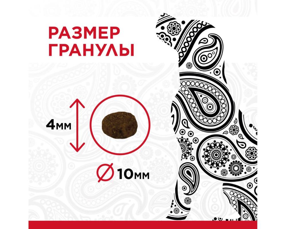 Сырой протеин минимум 28%, сырой жир минимум 15%, сырая клетчатка максимум 4%, зола максимум 8,5%, омега-3 кислоты минимум 1%, омега-6 кислоты минимум 2,7%, витамин Е минимум 80 МЕ/кг, глюкозамин минимум 500 мг/кг, хондроитин минимум 300 мг/кг, энергетическая ценность 3660 ккал/кг.