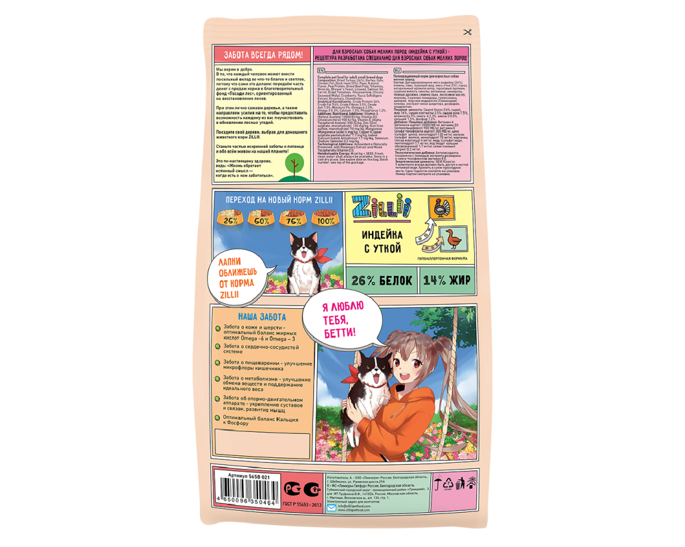 ZILLII Adult Dog Small Breed Сухой корм для взрослых собак мелких пород 800г Индейка с Уткой