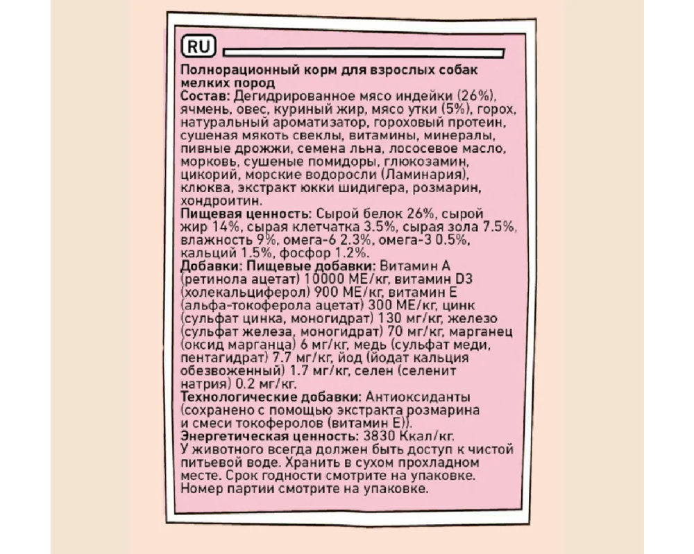 Дегидрированное мясо индейки (26%) – основной источник животного белка