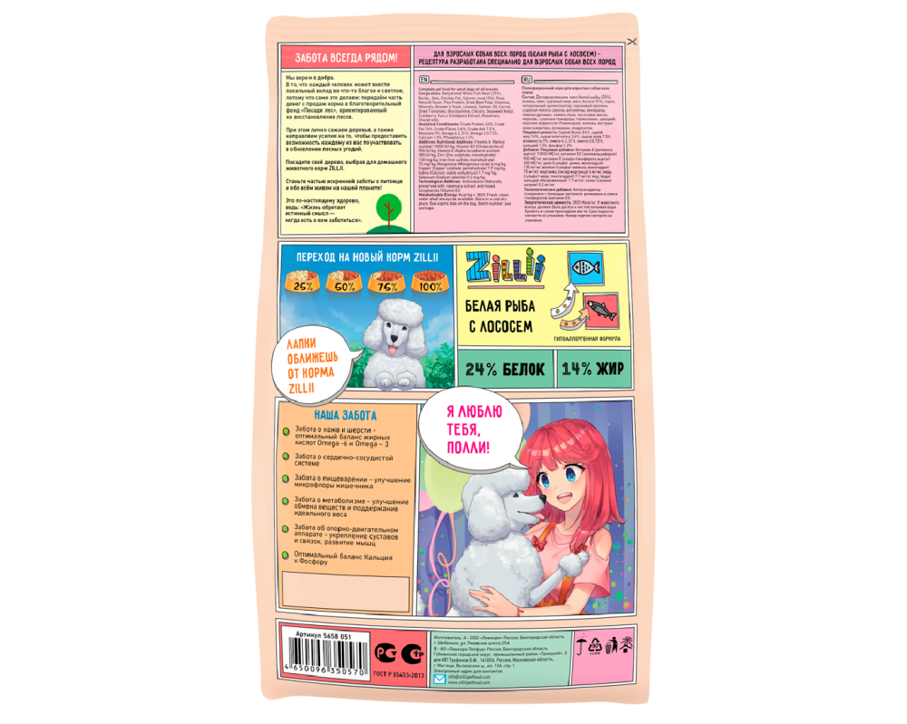 ZILLII Adult Dog Сухой корм для взрослых собак 3кг Белая Рыба с Лососем