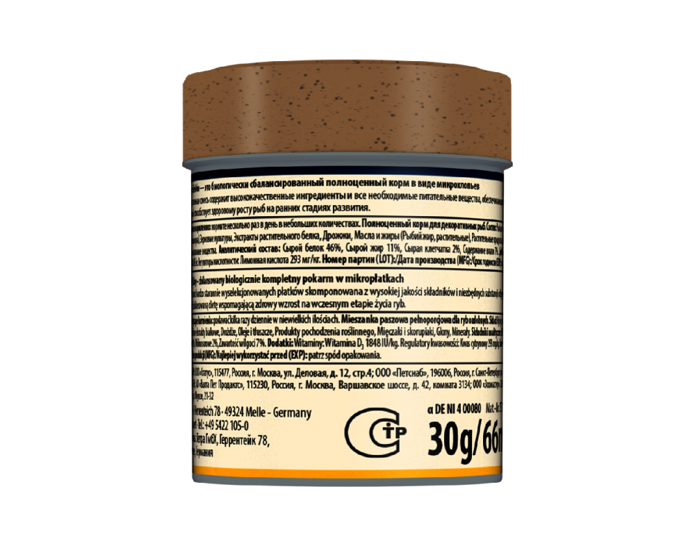 Tetra Min Baby — полноценный корм в виде микрохлопьев для ежедневного питания мальков декоративных рыб длиной до 1 см. Корм разработан с учётом потребностей тропических рыбок и обеспечивает здоровый рост на ранних стадиях развития.