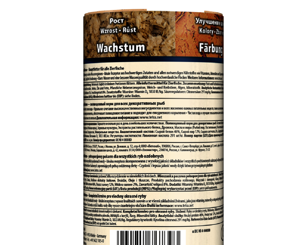 TetraMenu — инновационный корм для всех видов аквариумных рыб, включающий 4 специально разработанных вида хлопьев для разнообразного и сбалансированного питания. Каждый цвет хлопьев имеет своё предназначение: