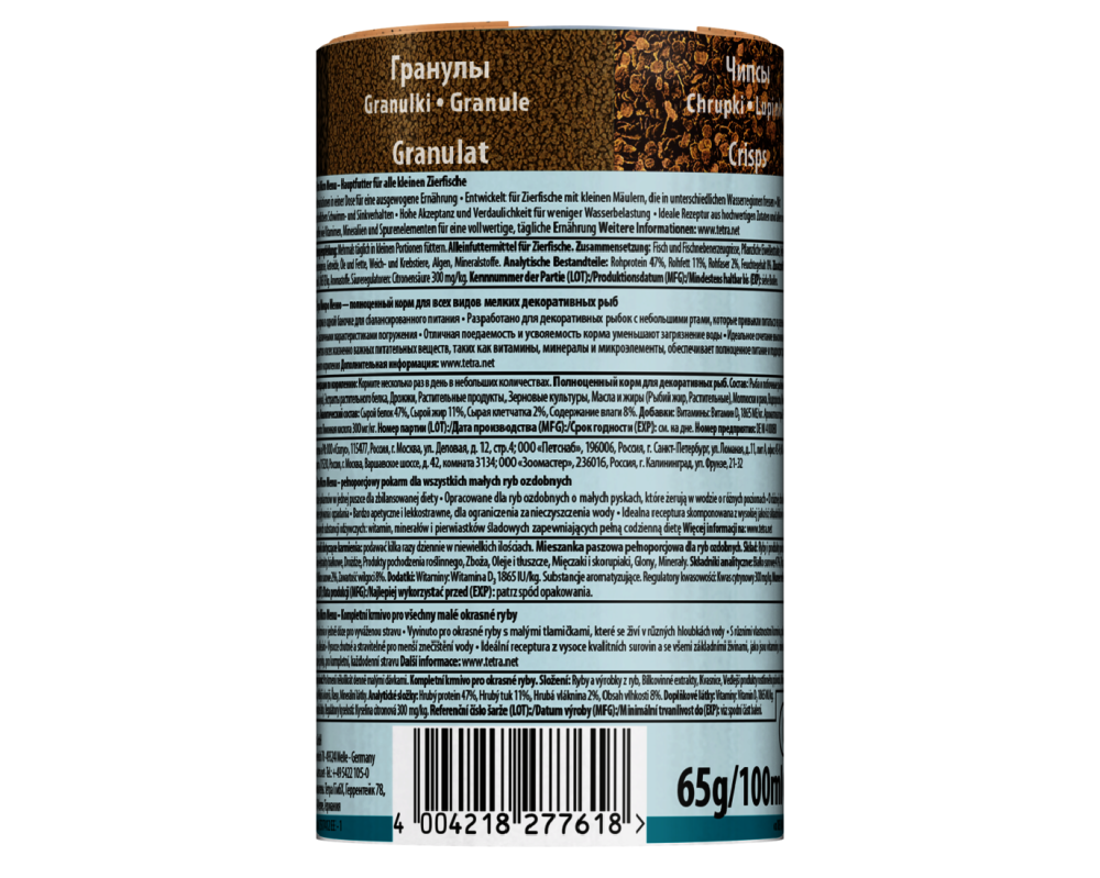 Tetra Micro Menu — полноценный корм для мелких декоративных рыб, питающихся в верхних, средних и нижних слоях воды. Представлен в виде гранул, палочек, шариков и чипсов диаметром 0,3–2,5 мм.