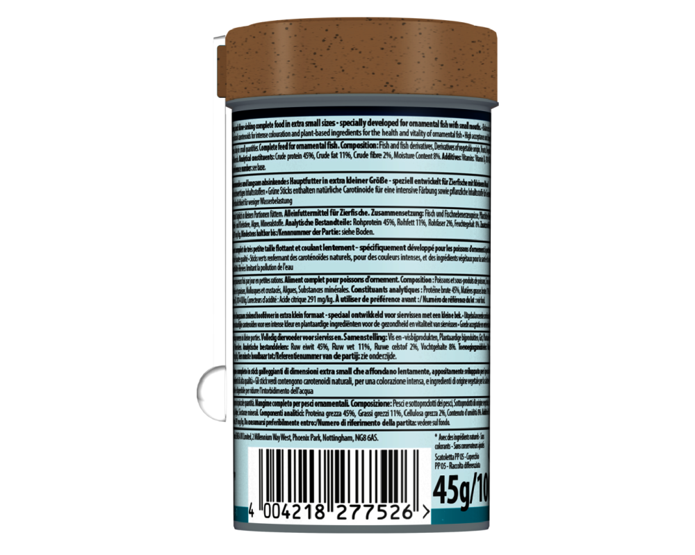 Tetra Micro Sticks — полноценный корм в виде палочек для мелких декоративных рыб, питающихся в верхних и средних слоях воды. Благодаря оптимальному диаметру 1,5–2,5 мм корм легко усваивается даже рыбками с небольшими ртами. Палочки быстро размягчаются в воде, что упрощает процесс кормления.