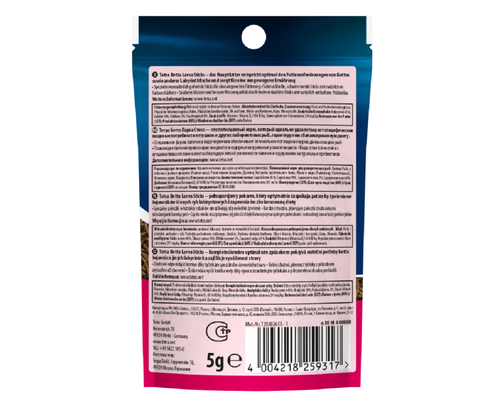Tetra Betta Larva Sticks корм для рыб в виде палочек 5г