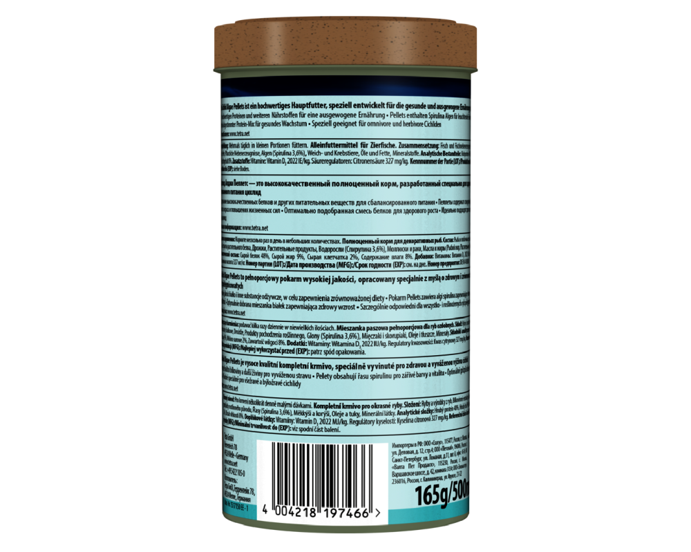 Полноценный корм в виде гранул для травоядных цихлид. Специально разработан для усиления естественной окраски рыб, особенно красных, оранжевых и желтых оттенков. Корм легко усваивается, способствует здоровому росту и долголетию рыб.