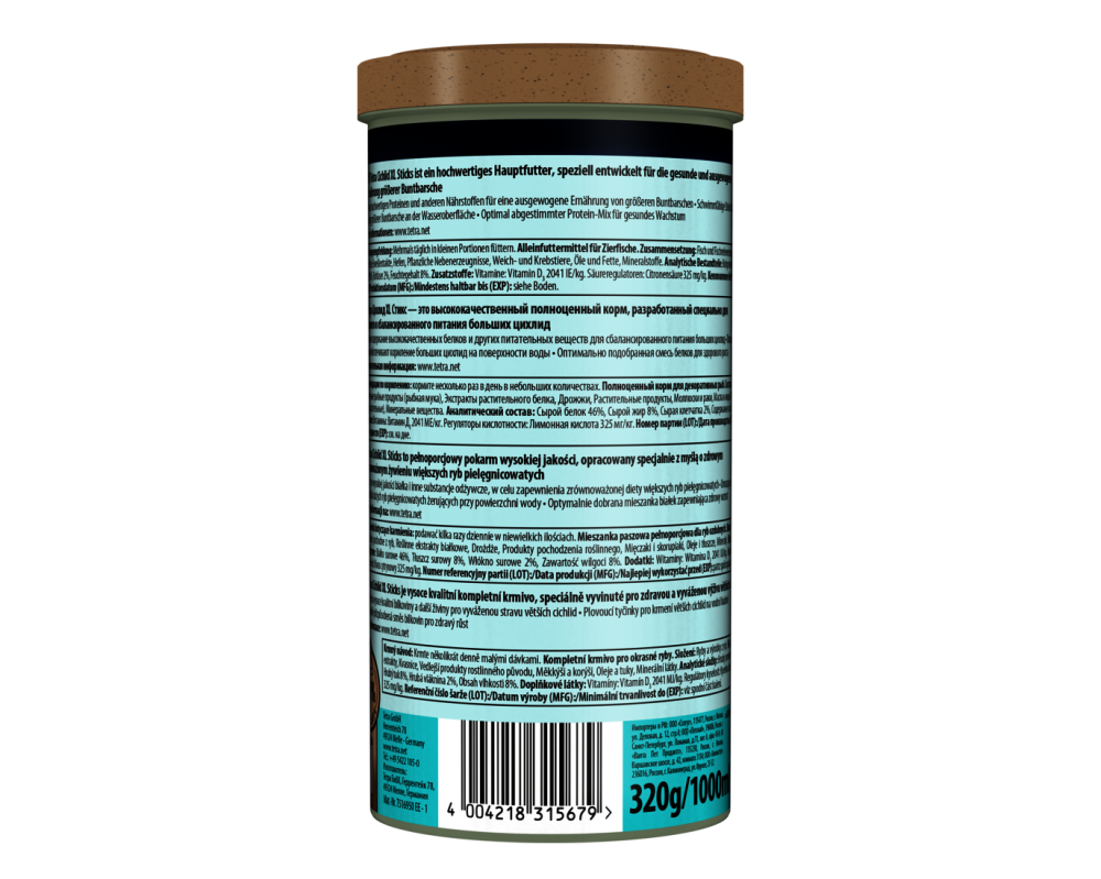 Специально разработанный корм обеспечивает полноценное питание и поддерживает здоровье ваших цихлид. Крупные палочки сохраняют форму в течение длительного времени, не загрязняя воду. Идеален для ежедневного кормления.