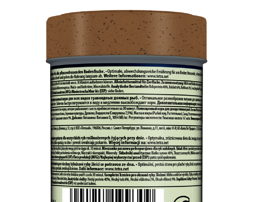 Tetra Pleco Tablets- полнорационный корм в виде таблеток для сбалансированного питания травоядных донных рыб. Благодаря высокому содержанию спирулины поддерживает здоровье и жизненные силы рыб. Таблетки быстро опускаются на дно, медленно размягчаются, высвобождая питательные вещества.