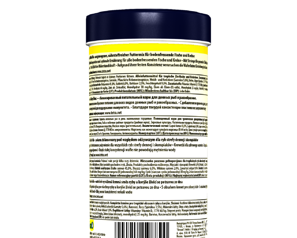 Tetra Wafer Mix — сбалансированный корм для донных рыб и ракообразных. Благодаря особой твёрдой консистенции пластинки не загрязняют воду. Корм быстро опускается на дно и размягчается, но не растворяется, обеспечивая оптимальное питание.