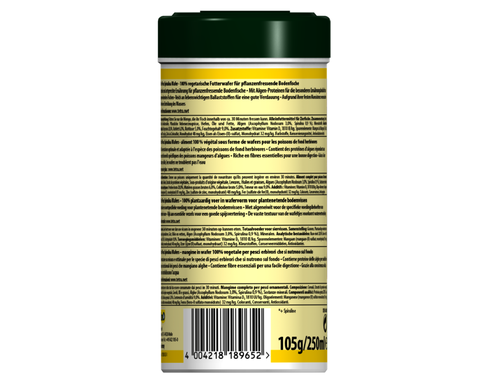 Специальные вафли медленно тонут и сохраняют форму в воде, что позволяет рыбкам комфортно питаться на дне аквариума. Благодаря содержанию спирулины корм способствует укреплению иммунитета и улучшению окраса рыб.