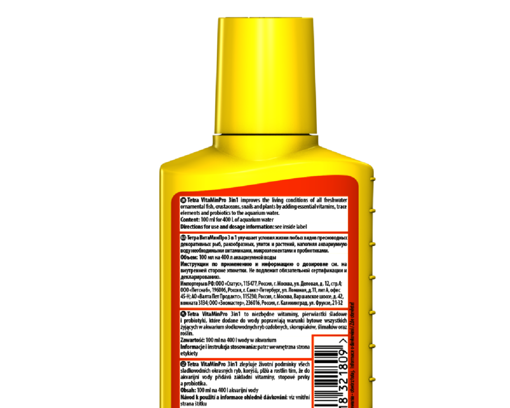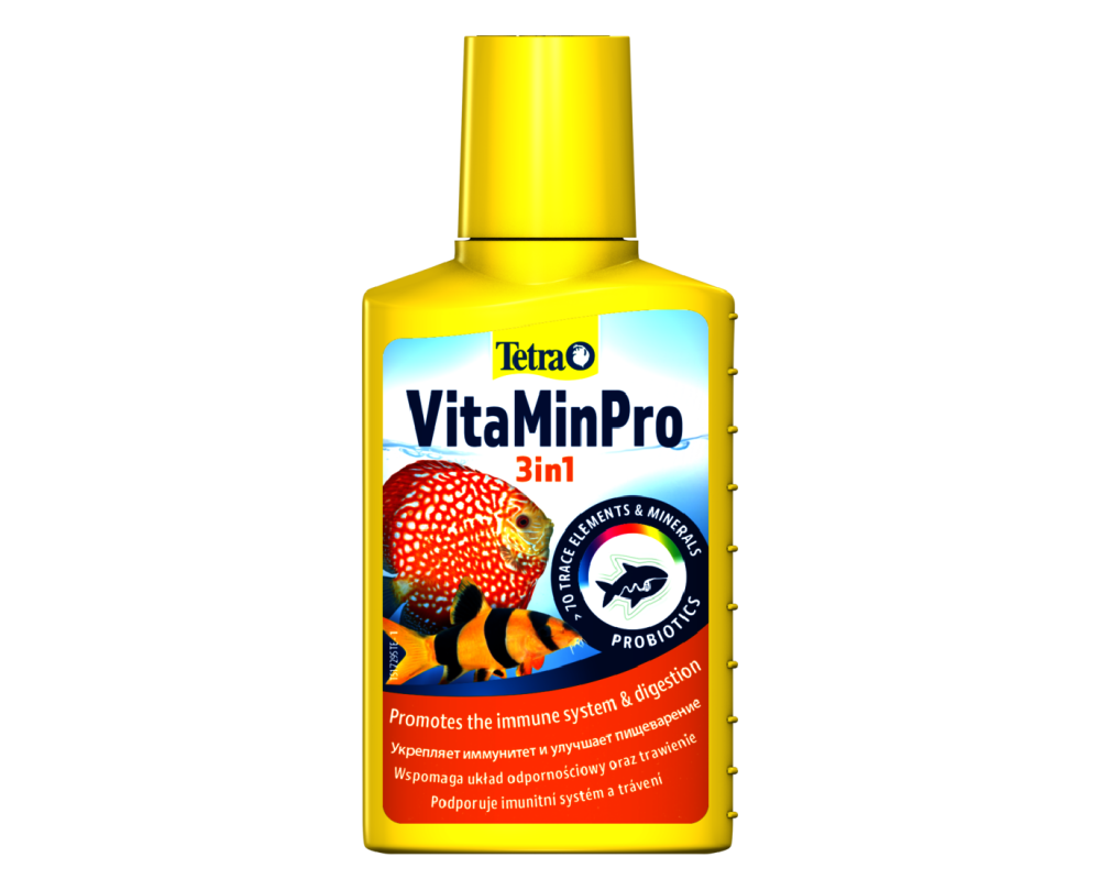 Tetra VitaMinPro 3in1 - Этот кондиционер для ухода за водой улучшает условия жизни всех видов пресноводных декоративных рыбок, ракообразных, улиток и растений, добавляя в аквариумную воду необходимые витамины, микроэлементы, минералы и пробиотики.