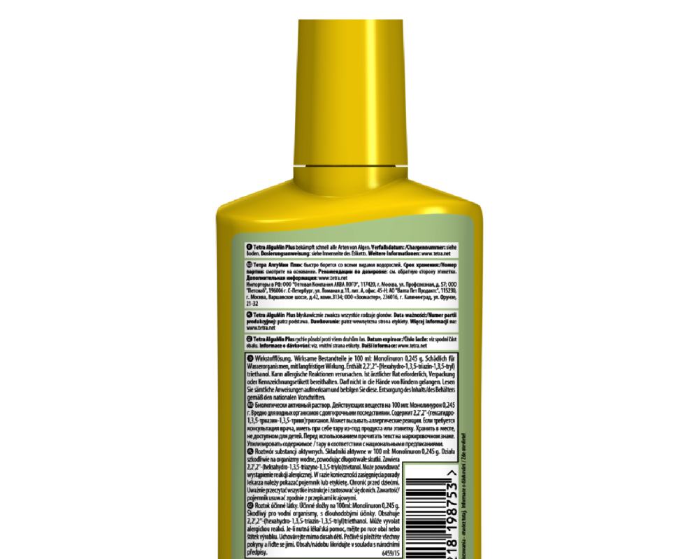 Tetra AlguMin Plus — эффективное средство для борьбы с водорослями в пресноводных аквариумах. Препарат быстро устраняет различные виды водорослей и предотвращает их дальнейшее распространение. Благодаря жидкой форме обеспечивается оптимальное распределение активного вещества.