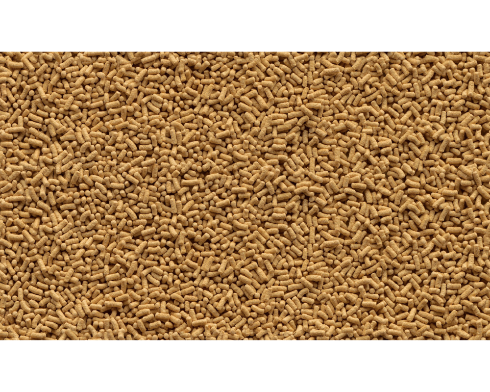 Основные компоненты: зерновые культуры, экстракты растительного белка, растительные продукты, рыба и рыбные субпродукты, масла и жиры, минеральные вещества, водоросли, дрожжи