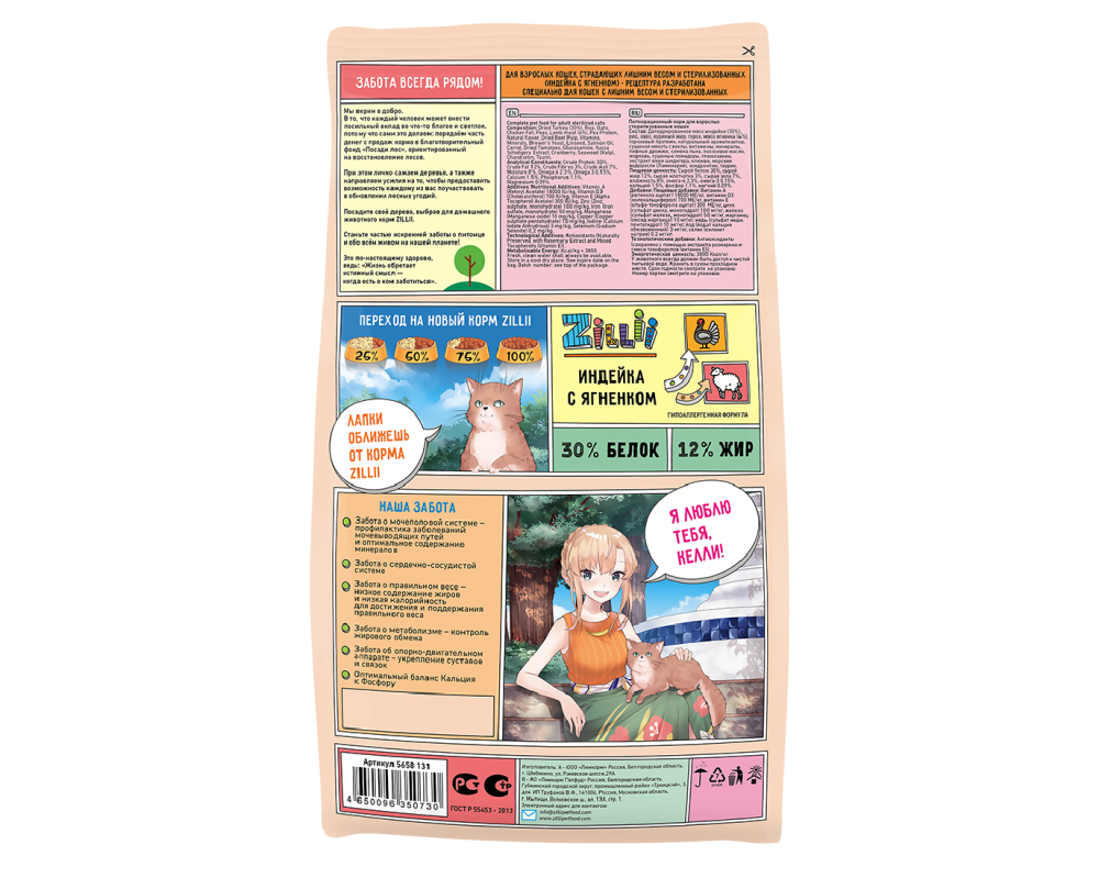 ZILLII Light/Sterilized Cat Сухой корм для взр кошек с избыт весом и стерил 400г Индейка с Уткой