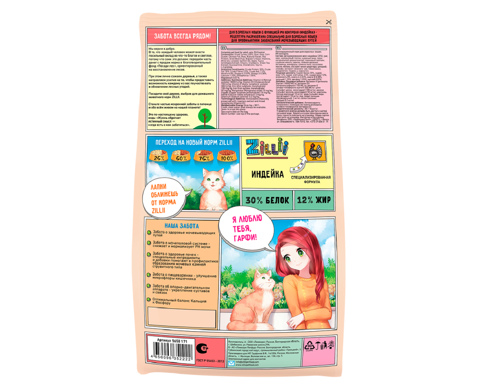 ZILLII Urinary Care Cat Сухой корм для взрослых кошек PH контроль 400г Индейка