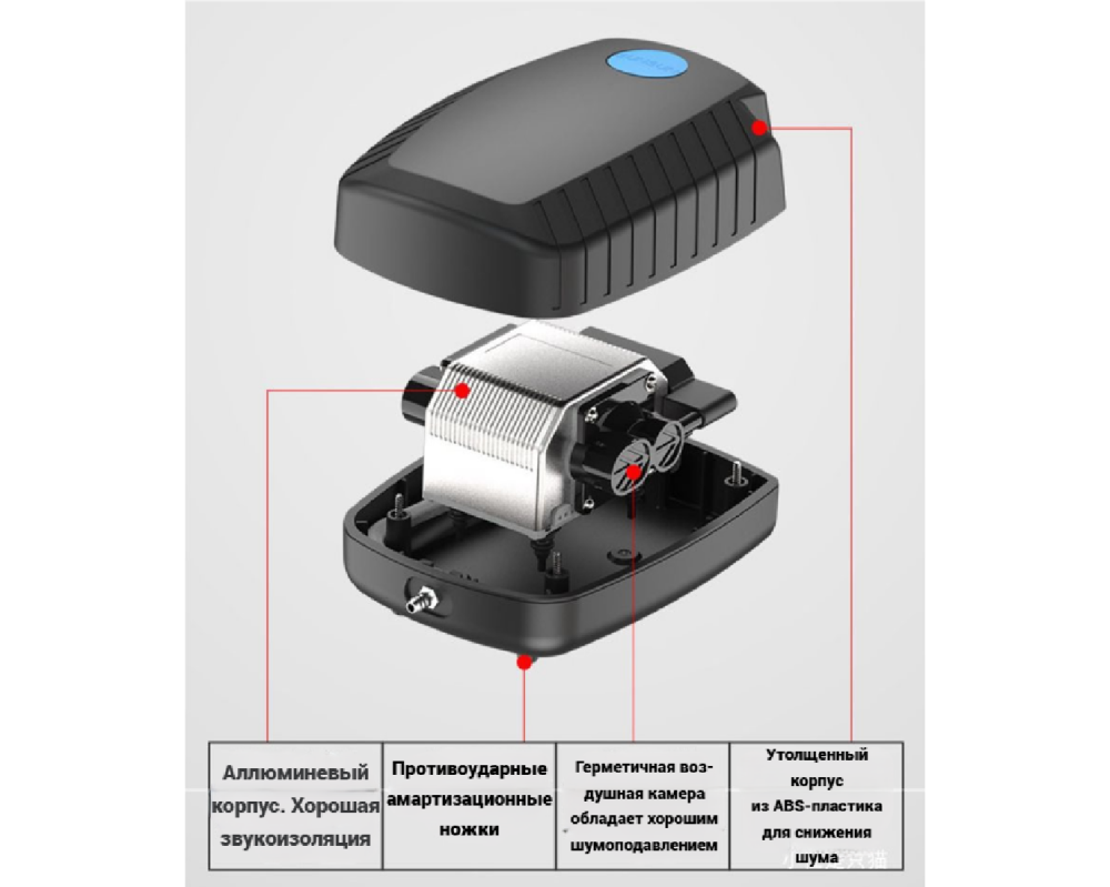 Универсальный мембранный компрессор нового поколения для аэрации водоемов и аквариумов. Устройство разработано для круглосуточной работы и подходит как для домашнего, так и для уличного использования.
