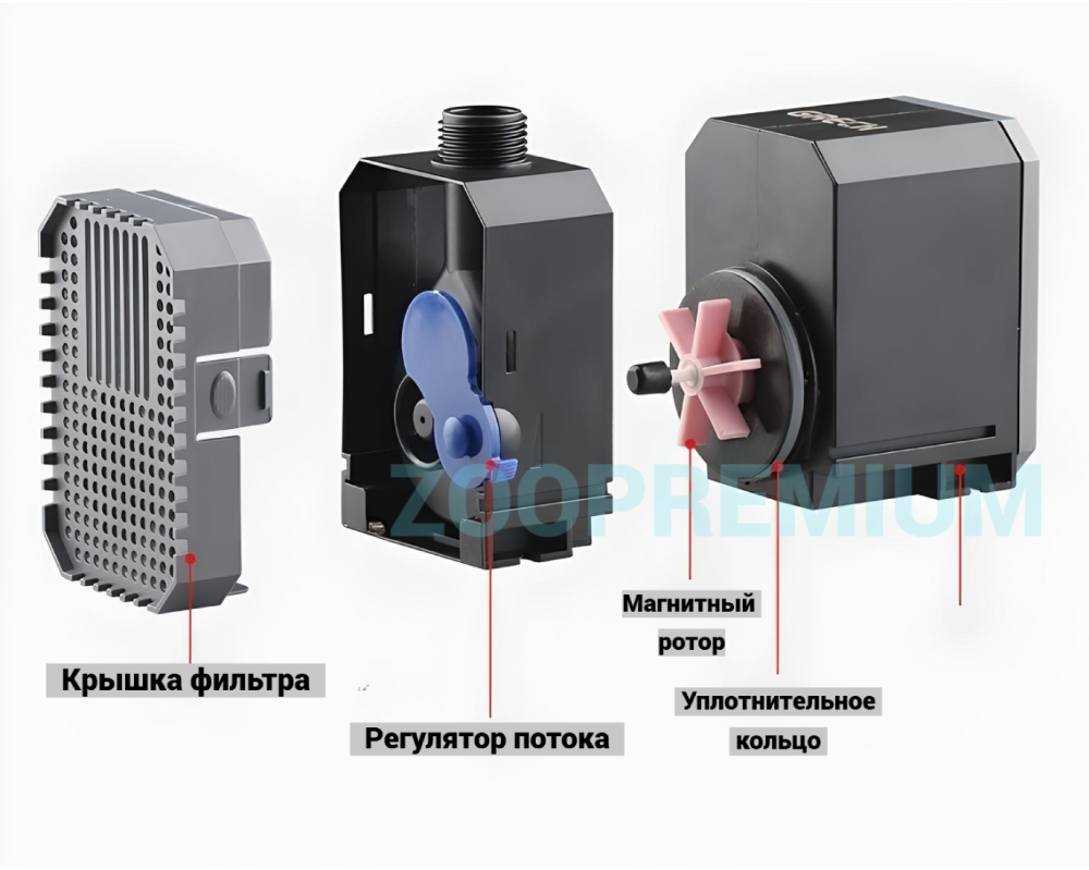 SUNSUN CHJ-500 Погружной насос с регулятором потока, 7W, 500л/ч, h-0,9м, выход 13/16мм, кабель 1,5м, 78*56*78мм