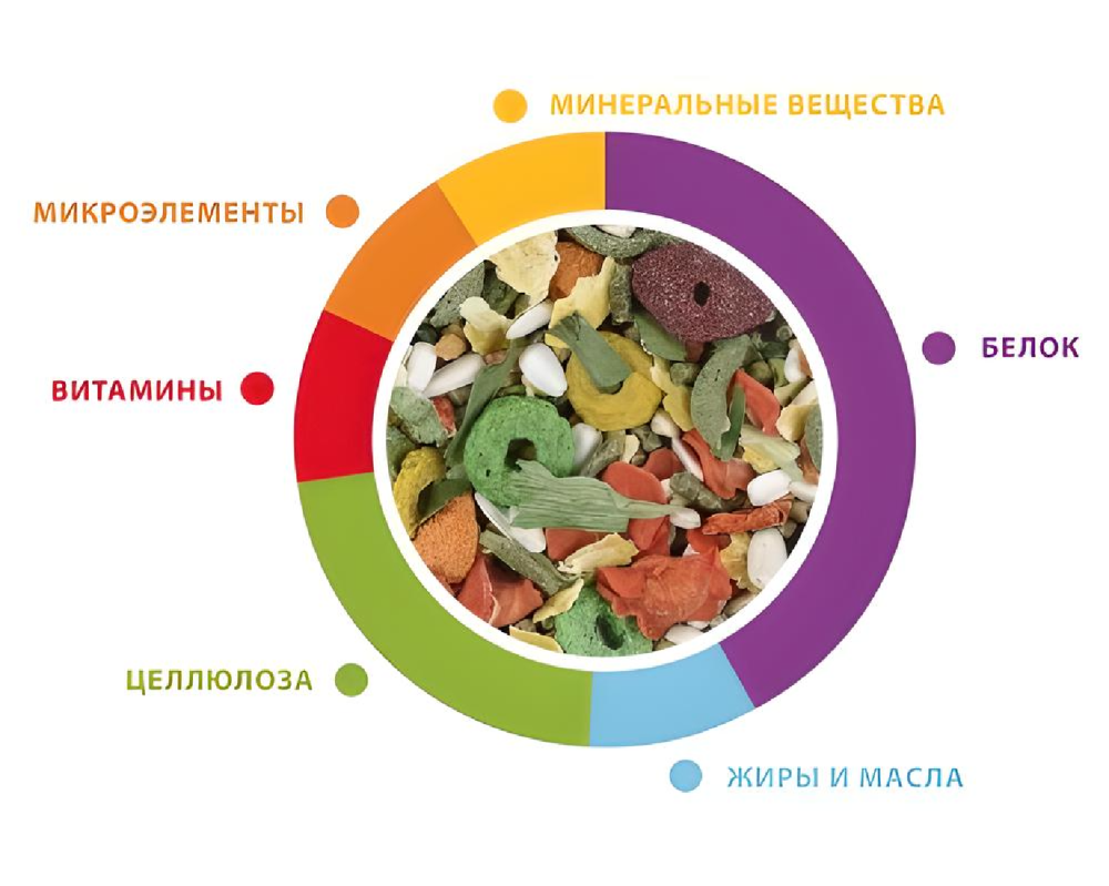 Питание для взрослых декоративных кроликов с сырьем в различном виде в зависимости от процесса его обработки, с витаминными добавками и микроэлементами.