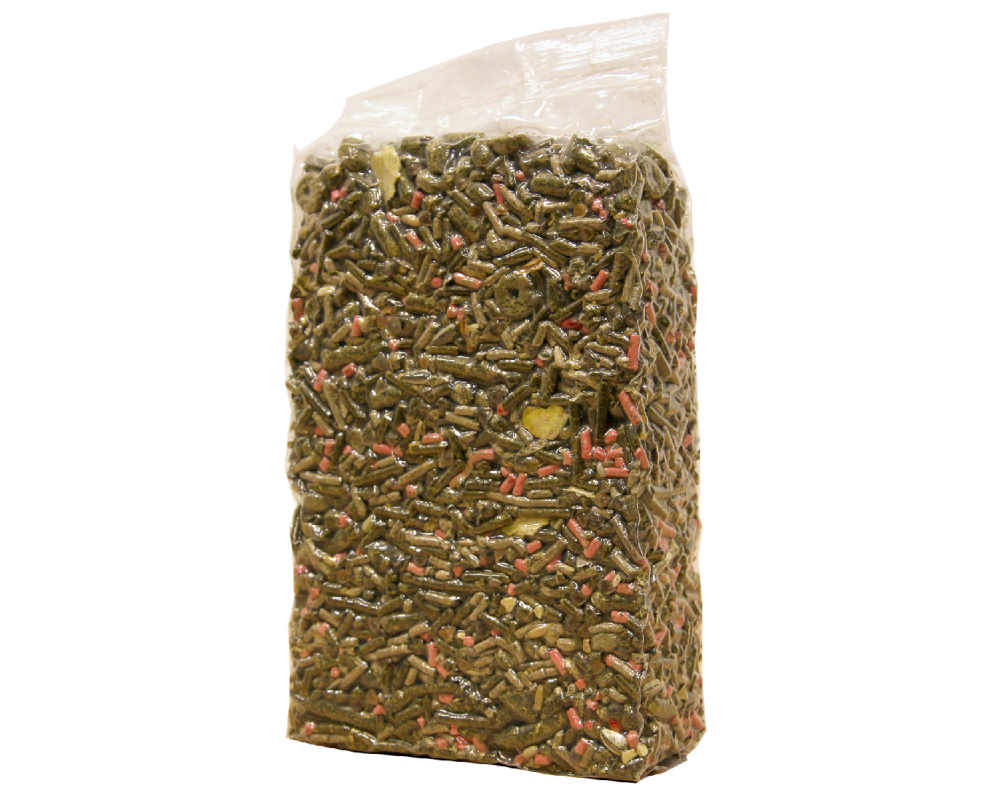 В состав корма добавлены гранулы, богатые Омега 3 и инулином.