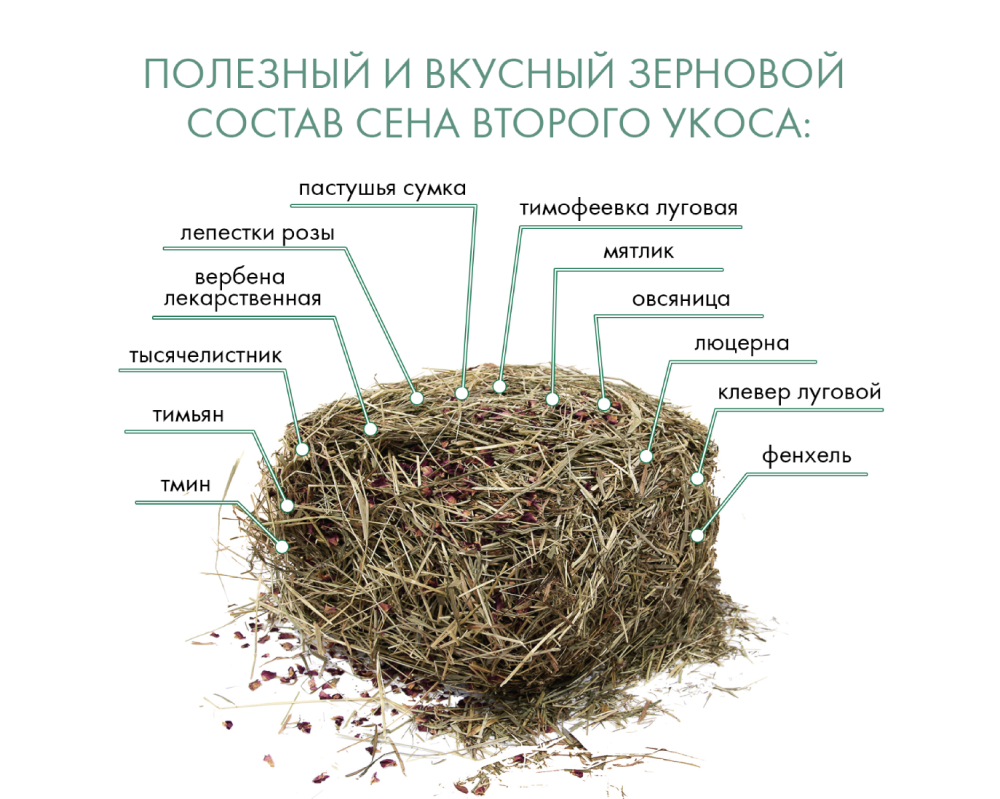 Правильно высушенное сено помогает деликатному пищеварению, а его приятный запах понравится не только маленькому питомцу, но и его хозяину.