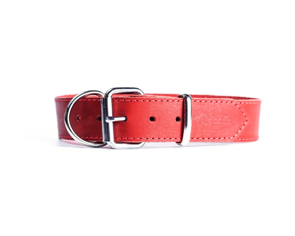 Ошейник кожаный для собак GRIPALLE артикул Дакс 35-65S, натуральная кожа, стальная фурнитура, размер: ширина 35 мм, длина 65 см, цвет красный, полиэти