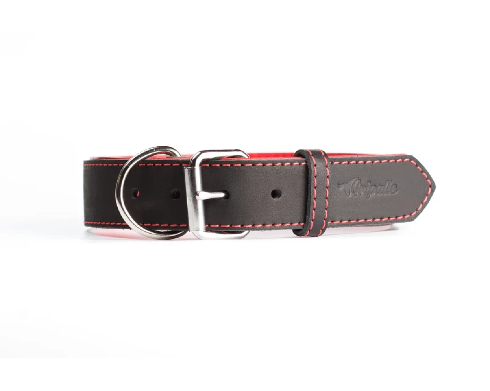 Ошейник кожаный с мягкой красной подкладкой GRIPALLE артикул Остин 40-45S, натуральная кожа, стальная фурнитура, размер: ширина 40 мм, длина 45 см, цв