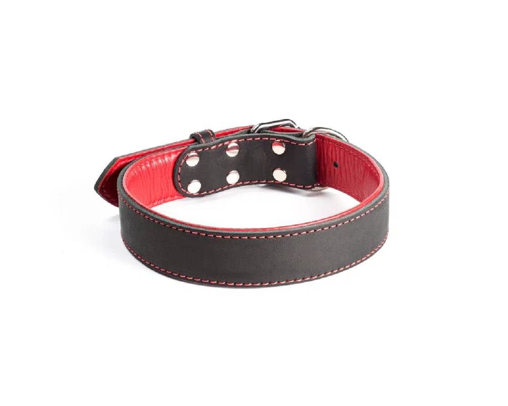 Ошейник кожаный с мягкой красной подкладкой GRIPALLE артикул Остин 40-65S, натуральная кожа, стальная фурнитура, размер: ширина 40 мм, длина 65 мм, цв