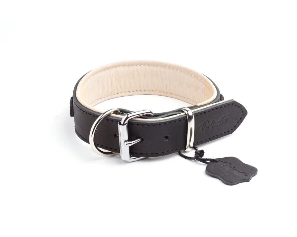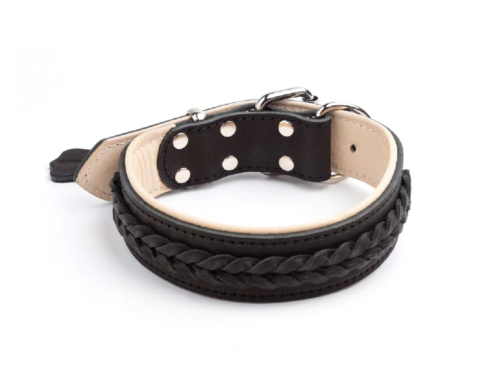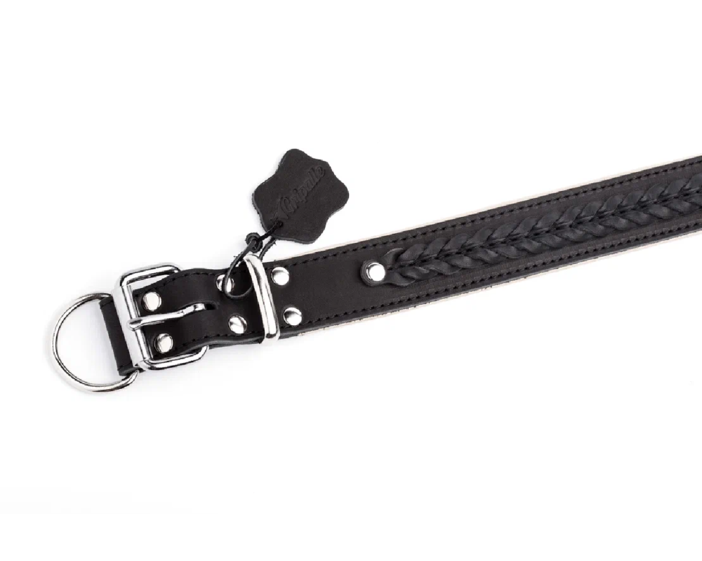 Ошейник кожаный с косичкой с мягкой бежевой подкладкой GRIPALLE артикул Гордон 40-50S, натуральная кожа, стальная фурнитура, размер: ширина 40 мм, дли