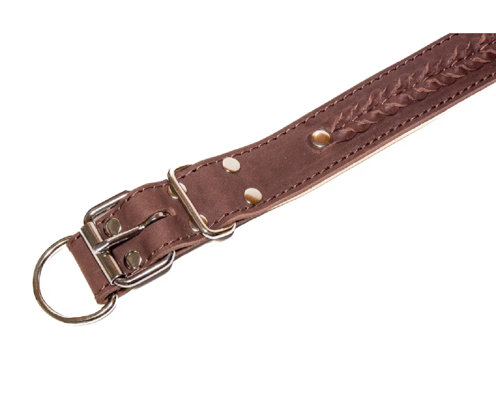 Ошейник кожаный с косичкой с мягкой бежевой подкладкой GRIPALLE артикул Гордон 40-60S, натуральная кожа, стальная фурнитура, размер: ширина 40 мм, дли